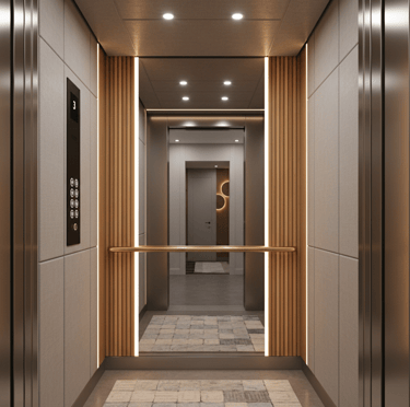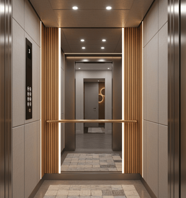 Seamless Integration: These designer cabins pair beautifully with complementary finishes such as custom False Ceilings, stylish Landing & Car Operating Panels, and various flooring options to complete a polished, high-end interior.