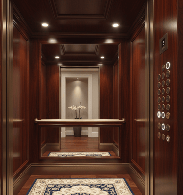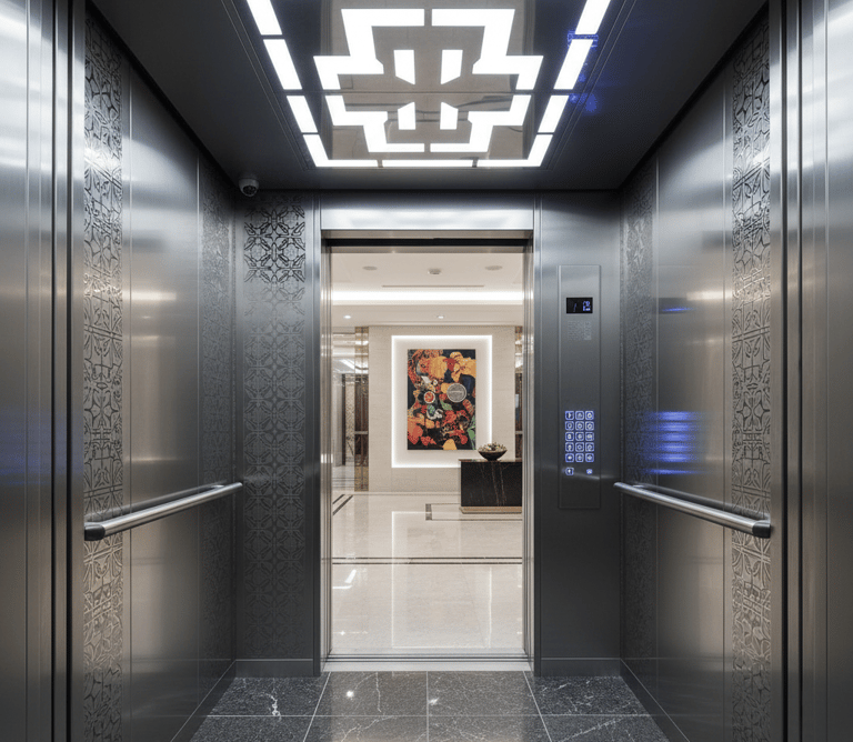 A showcase of Geetha Elevators' cabin craftsmanship and design.
